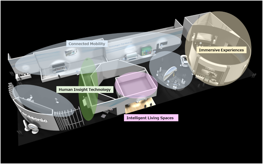 A Panasonic Corporation a nevadai Las Vegasban megrendezett CES 2019 szakvásáron mutatja be az elképzeléseit, arról, hogyan lehet okosan integrálni a fizikai termékeket az új, emberi állapotelemző digitális platformokkal. A Panasonic stand négy zónára osztható: Connected Mobility (csatlakoztatott mobilitás), Intelligent Living Spaces (okos életterek), Immersive Experiences (teljes körű élmények) és Human Insights Technology (emberi állapotelemző technológiák). Ez a kiállítás azt kívánja bemutatni, hogyan lehet ötvözni a Panasonic saját fejlesztésű technológiáit a fizikai és a digitális valamint a valós és virtuális világokkal, hogy még jobb élményeket élhessenek át a felhasználók.